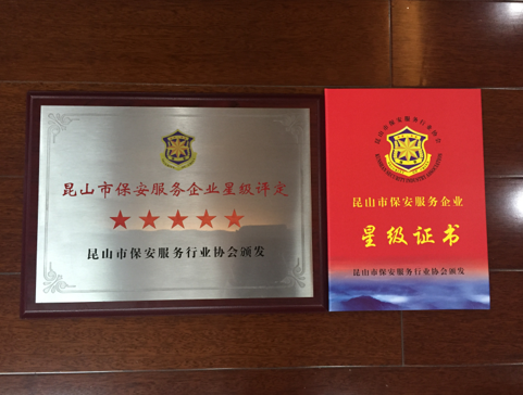 近日,在剛剛結(jié)束的昆山市保安服務(wù)企業(yè)星級(jí)評(píng)定中,昆山市保安服務(wù)有限公司以總分98.5的優(yōu)異成績(jī)榮獲了“2016年度五星級(jí)企業(yè)”榮譽(yù)稱號(hào)。