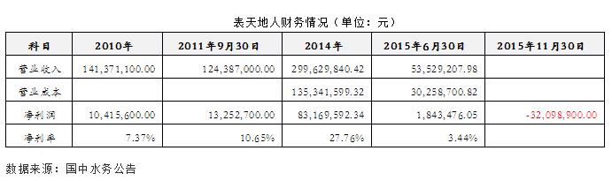 2012年,上市公司國中水務(wù)以約5.6億元收購天地人100%股權(quán),并在2015年12月以6.5億元價(jià)格將天地人100%股權(quán)轉(zhuǎn)讓于上海東熙投資,轉(zhuǎn)讓理由是由于市場競爭激烈天地人的主營業(yè)務(wù)出現(xiàn)大幅萎縮,導(dǎo)致2015年合并期間內(nèi)天地人虧損3,209.89萬元。