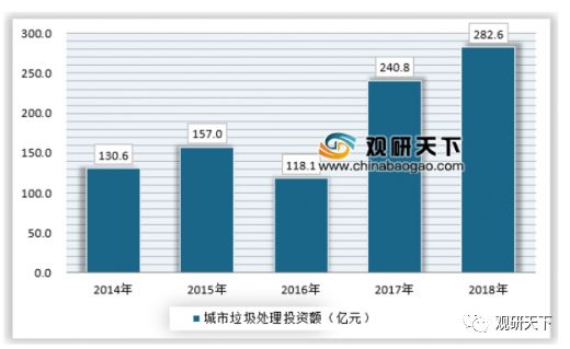 2014-2018年我國城市垃圾處理固定資產(chǎn)投資額
