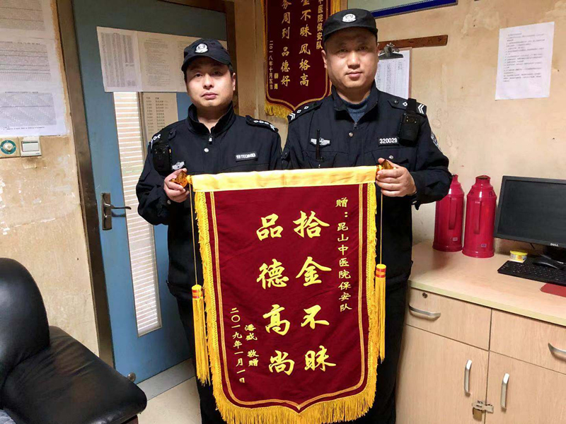 近日,保安公司中醫(yī)院安保隊收到一面印有“拾金不昧、品德高尚”的錦旗,感謝隊員黃興漢拾金不昧,幫助失主避免財產(chǎn)損失。