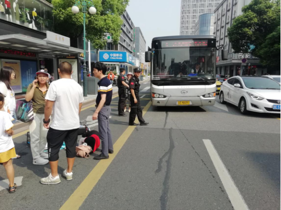 2019年9月8日上午9點20分左右,正陽橋北(西)邊站臺處發(fā)生一起交通事故,事故現(xiàn)場正在處于公交車停靠站黃線區(qū)域內(nèi),保安公司公交巡檢隊員在東面站臺執(zhí)勤,看到事故后第一時間趕過去查看傷員情況并維持現(xiàn)場秩序。