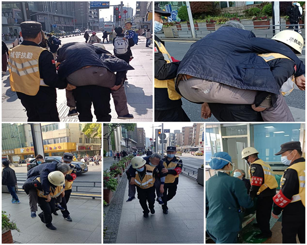 4月9日15:50分左右,安保公司柏廬城管中隊保安員紀冬林在采蓮街開展巡邏工作時,發(fā)現(xiàn)一名白發(fā)蒼蒼的老人暈倒在地,他立即與另外兩名隊員將老人送往人民醫(yī)院救治,經(jīng)過搶救成功脫離生命危險。