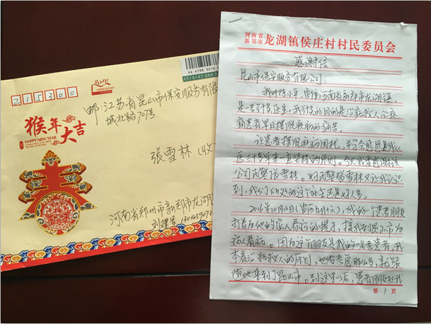 樂于助人 暖人心。2月9日,保安公司收到一封來自河南省新鄭市的表揚信。據(jù)了解,原來是一名河南省的陳姓先生被其朋友騙到昆山,被非法傳銷所控制,陳先生趁傳銷人員不備,逃離至距離最近公交派出所,公司駐公交所的值班保安員張雪林同志第一時間將此事上報至公交所民警處,并親自為陳先生買了回河南新鄭市的車票。
