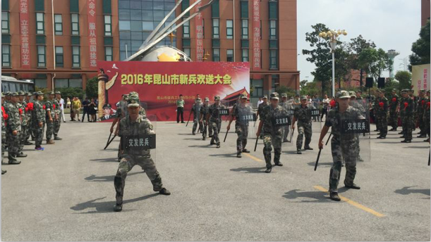 據(jù)悉,此次昆山市共有273名新兵入伍,參加本次歡送會的新兵共有100名。在歡送會中,公司民兵訓導中隊為新兵們帶來了擒敵拳、警棍盾牌操等表演,隊員們精彩的表演贏得了現(xiàn)場陣陣掌聲。昆山市人武部殷珊奇部長在會后對訓導中隊的表現(xiàn)特別作出了表揚及肯定,并希望民兵訓導中隊能繼續(xù)保持良好的精神風貌,爭做昆山民兵中的特種隊伍。