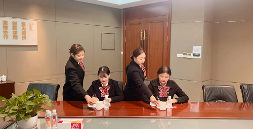 為進(jìn)一步促進(jìn)農(nóng)商行項(xiàng)目會(huì)務(wù)工作規(guī)范化,提高會(huì)務(wù)人員服務(wù)意識(shí)與服務(wù)技能。3月18日中午,昆通物業(yè)駐農(nóng)商行項(xiàng)目會(huì)務(wù)服務(wù)中心組織全體會(huì)務(wù)人員開(kāi)展了會(huì)務(wù)服務(wù)技能培訓(xùn)。此次培訓(xùn)分為理論學(xué)習(xí)、操作技能和禮儀形體培訓(xùn)三部分,主要包括禮儀站姿、茶水服務(wù)、會(huì)務(wù)情景規(guī)范服務(wù)、服務(wù)意識(shí)和突發(fā)問(wèn)題應(yīng)急處置等內(nèi)容?,F(xiàn)場(chǎng)模擬學(xué)習(xí)了會(huì)場(chǎng)物品擺放位置及會(huì)前具體操作流程;會(huì)中茶水服務(wù)、語(yǔ)言溝通技巧、應(yīng)急情況處置的技巧和方法;以及會(huì)后對(duì)會(huì)議相關(guān)用品高效有序清場(chǎng)。