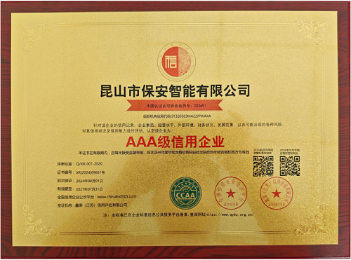 AAA信用體系是由獨立第三方專業(yè)評級機構(gòu)進行認定,結(jié)合公司的信用記錄、經(jīng)營狀況、財務(wù)指標、發(fā)展前景,綜合相關(guān)政策及現(xiàn)狀進行綜合評級。此次認證,標志著保安智能在信息管理部分的信息安全管理、信息技術(shù)服務(wù)管理和質(zhì)量管理能力,企業(yè)環(huán)境管理體系及職業(yè)健康安全管理體系符合國家標準要求,能夠穩(wěn)定地向客戶提供高標準、嚴要求的產(chǎn)品和服務(wù),發(fā)揮產(chǎn)品功能和品牌價值。