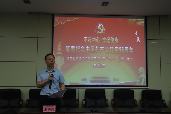 比賽現(xiàn)場(chǎng),12位參賽選手圍繞“不忘初心,牢記使命”主題,從不同角度謳歌了偉大的黨,并結(jié)合各自崗位,分享在本職工作中收獲的感悟,在展示湖南省環(huán)境保護(hù)科學(xué)研究院黨員良好精神風(fēng)貌的同時(shí),也表達(dá)了對(duì)中國(guó)共產(chǎn)黨98華誕的美好祝福。
