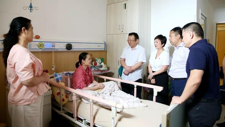 劉群一行來到省中醫(yī)藥研究院,看望慰問正在住院的省環(huán)境應(yīng)急與事故調(diào)查中心職工王蔚,詢問她的身體狀況和治療效果,勉勵(lì)她堅(jiān)定信心,振奮精神,保持好的心態(tài),戰(zhàn)勝病魔。黨組織是最堅(jiān)強(qiáng)的后盾,遇到困難,及時(shí)向組織反映,相信組織、依靠組織,就一定能渡過難關(guān)。