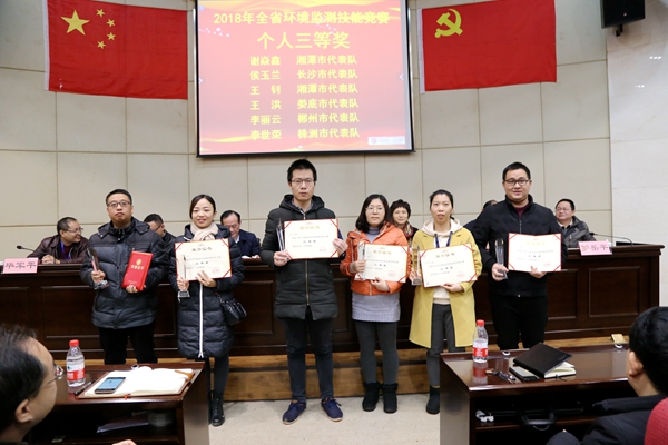 由省生態(tài)環(huán)境廳、省人力資源和社會(huì)保障廳、省總工會(huì)聯(lián)合舉辦,長沙環(huán)境保護(hù)職業(yè)技術(shù)學(xué)院和省環(huán)境監(jiān)測中心站承辦的2018年全省環(huán)境監(jiān)測技能競賽于12月19日至21日在省會(huì)長沙成功舉行。來自全省環(huán)境監(jiān)測系統(tǒng)的14支代表隊(duì)42名選手參加了本次競賽,省生態(tài)環(huán)境廳副廳長劉群、省總工會(huì)副巡視員王湘靜、省人力資源和社會(huì)保障廳相關(guān)負(fù)責(zé)人出席閉幕式并為優(yōu)勝單位和個(gè)人頒獎(jiǎng)。