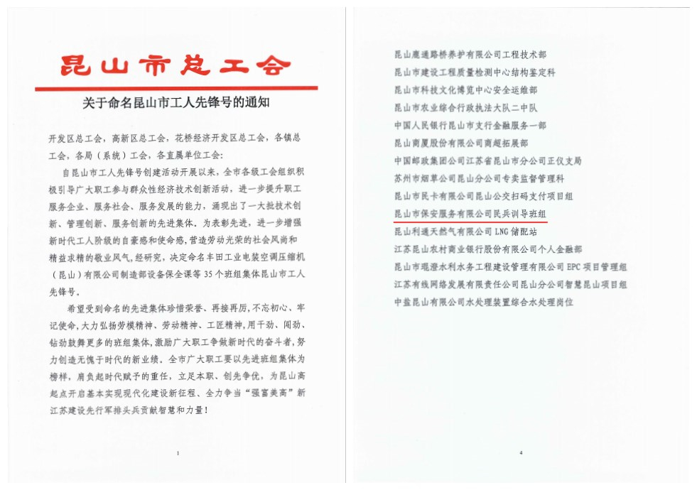 保安公司榮獲昆山市“工人先鋒號(hào)”榮譽(yù)稱號(hào)