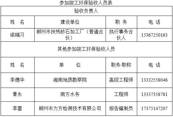 郴州市扶殘砂石加工廠年產(chǎn)5萬噸碎石建設(shè)項目竣工環(huán)保驗收公示